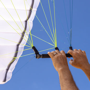 The double skin Paia parawing is optimized to achieve parawinging's full flight performance potential. Its forward-driving drift redefines comfort, range, depower, and upwind effectiveness, while still being able to retract and deploy.
